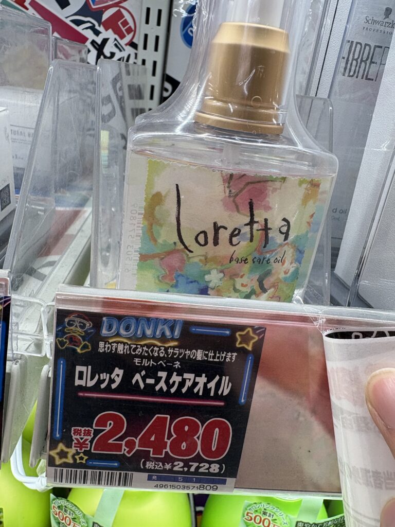 ドン・キホーテさんでは美容室専売のプロ用のヘアオイルのラインナップは決して多くはないです。しかし人気の売れすじの製品のラインナップはそろっているので、満足なものがないということはないでしょう!