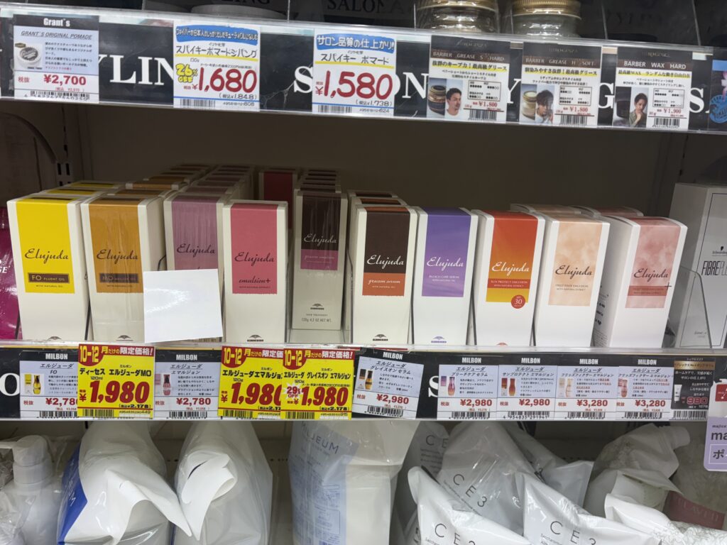 ミルボンさんのオージュアなどは厳しく規制がされているようで、絶対といっていいぐらいドン・キホーテの店頭には並びません。しかしエルジューダシリーズのオイルは購入することができます。値段も少しだけですがお安いことが多いです。