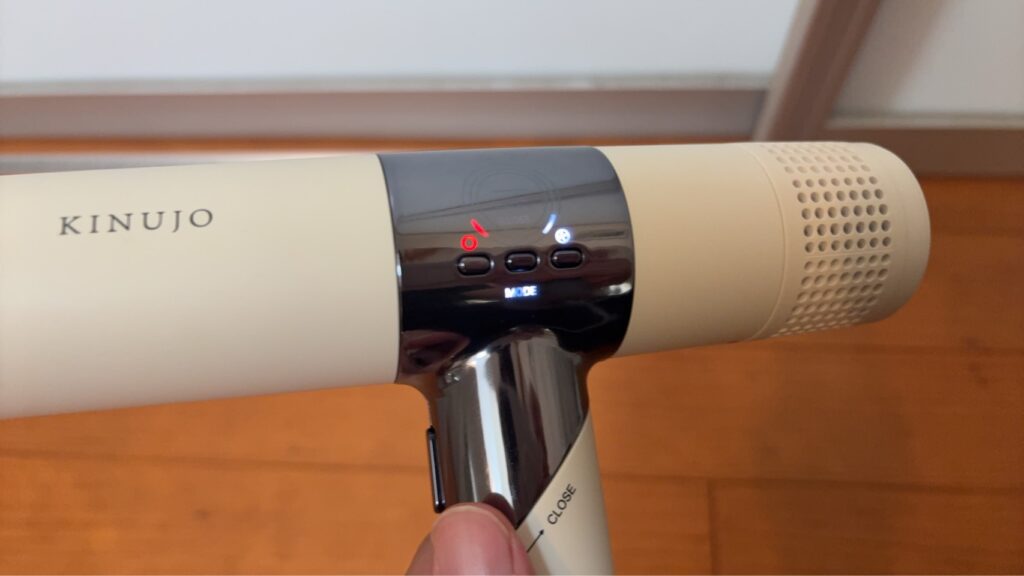 もちろん、風が強いと“熱で髪が痛むのでは?”と思うかもしれませんが、絹女は温度のコントロールがとても細かい。高温でバーッと乾かすタイプではなく、音もビューンという感じでサッと乾かしてくれるという感じです。ブォーンという風の音でななく、シャープな感じの静かさは感じられるでしょう。