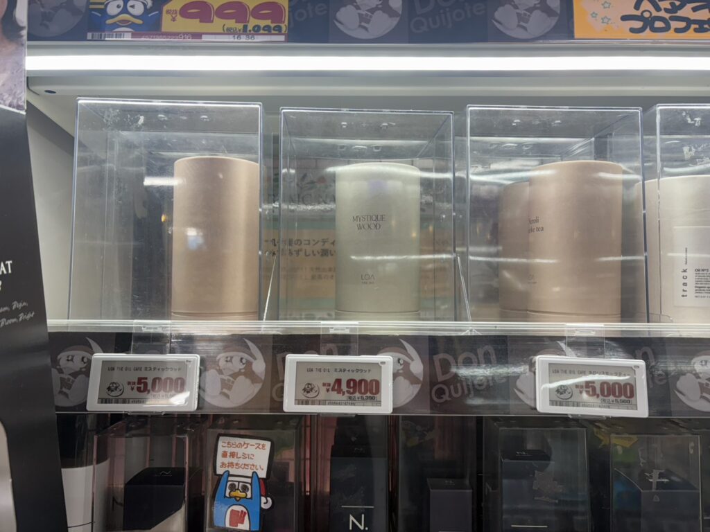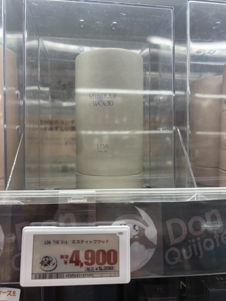 しかし、一部ロザザオイルのミスティックウッド100mlのみ4,900円(税込5,390円)というものもありました。ロアザオイルは人気なので定価でも売れると思うのですが、激安の殿堂ドンキだけあって一部の商品のみ100円引きにしたのではないでしょうか!?